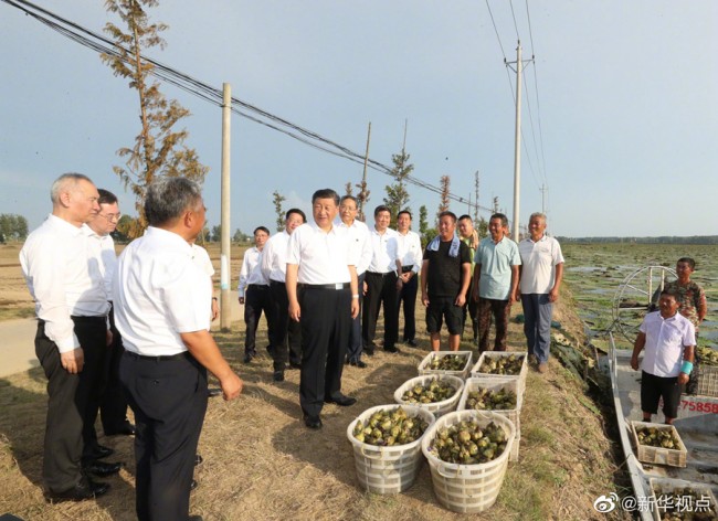习近平总书记18日赴安徽考察调研。当天下午,他先后来到阜阳市阜南县王家坝闸、红亮箱包有限公司、蒙洼蓄洪区曹集镇利民村西田坡庄台,察看淮河水情,走进田间地头,了解当地防汛救灾和灾后恢复生产等情况,看望慰问受灾群众。