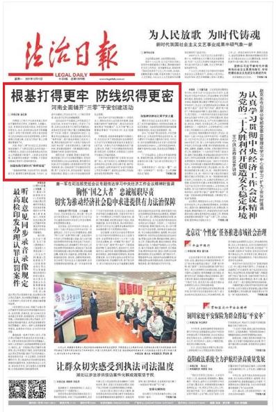 法治日报头版头条刊文 | 河南全面铺开“三零”平安创建活动 发布时间:2021-12-14 10:43:14