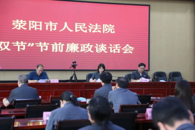 中秋、国庆将至,为进一步落实全面从严治党主体责任,筑牢干警廉洁自律思想防线,9月9日上午,荥阳市人民法院组织召开2022年中秋、国庆节前集体廉政谈话会,班子成员、中层正副职、全体员额法官及执行员参加会议,党组成员马海彬主持会议。