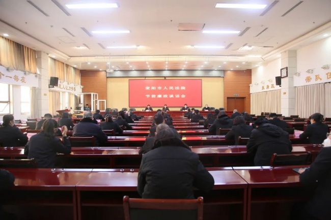 为引导全院干警守住廉洁底线,营造风清气正的节日氛围,1月18日下午,荥阳市人民法院在十二楼会议室组织召开节前廉政谈话会,会议由党组副书记、常务副院长何玉杰主持,院班子成员、各部门中层正副职、员额法官、执行员参加会议。