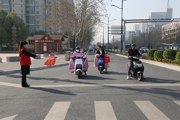 活动中,志愿者身穿红马甲,手拿小红旗,通过手势和语言,及时对行人、非机动车闯红灯、乱穿马路等不文明交通行为进行提醒和劝阻,耐心疏导行人和机动车安全通过路口,引导广大市民做文明交通的参与者和学习雷锋精神的践行者,做到安全驾驶、文明出行。