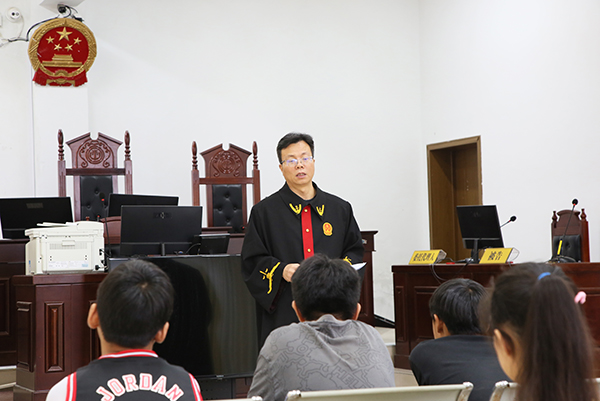 庭审结束后,李志勋庭长围绕校园欺凌产生的因素、表现形式以及如何提高自我保护能力等方面,给同学们上了一堂生动的法治课。他结合具体案例以案说法,用生动简洁、通俗易懂的语言向同学们讲解了校园欺凌的具体行为、法律后果以及防范建议,帮助同学们区分一般玩耍打闹行为和校园欺凌行为,引导同学们明确法律底线和行为边界,强化规则意识,做到敬畏法律、遵守法律,当自身面对校园欺凌时,学会用正确的方式保护自己、寻求帮助、勇敢对欺凌行为说“不”,提高自我保护能力,做一个学法、懂法和守法之人。