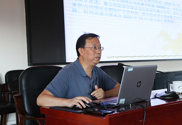 会上,张安毅教授围绕荥阳法院2024年上半年裁判文书进行了分析讲评,以高度的学术站位,针对在裁判文书制作中存在的问题进行了详细的总结和讲评,并结合自身多年的工作经验给予了专业性的意见建议。张安毅教授还对裁判文书制作的文书格式、文书写作技巧、注意事项及当前法官制作裁判文书的薄弱环节等方面进行了深层次的讲解,讲课内容贴近工作实际,具有很强的现实针对性和指导性,获得现场阵阵掌声。