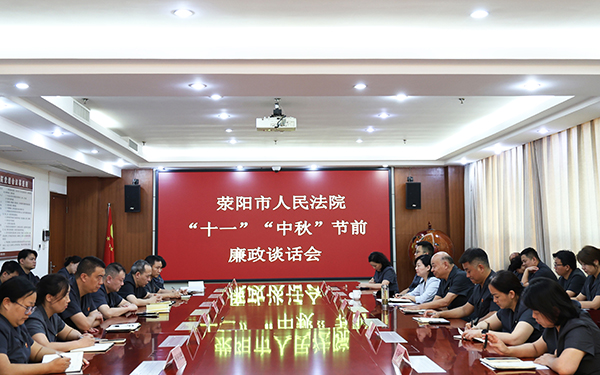 国庆、中秋双节将至,为落实全面从严治党要求,巩固拓展深入贯彻中央八项规定精神学习教育成果,教育引导全院干警增强廉洁自律意识,筑牢拒腐防变思想防线,共同营造风清气正、平安祥和的节日氛围,9月30日,荥阳市人民法院召开国庆、中秋节前廉政谈话会。荥阳法院党组副书记袁雷主持会议并讲话,院领导班子成员、审判委员会专职委员、中层正副职参加会议。