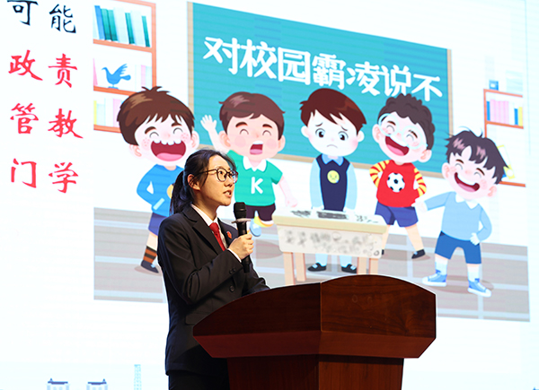 互动环节中,“遭遇欺凌该怎么办”“看到同学被欺负如何正确应对”等问题引发学生热烈讨论。张豪爽耐心答疑解惑,以案说法辨析日常玩闹与欺凌行为的界限,同时延伸讲解安全常识,提醒学生严守规则、远离危险,全面提升自我保护能力,鼓励大家争做尊法、学法、守法、用法的新时代好少年。