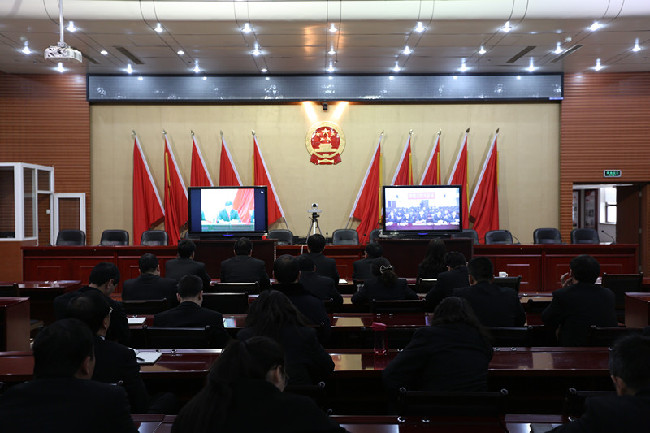 2月28日上午10:00,我院组织班子成员、各部门负责人及部门廉政监察员、纪检监察部门干警在十二楼会议室收看“全国法院2014年党风廉政建设和反腐败工作电视电话会议”。