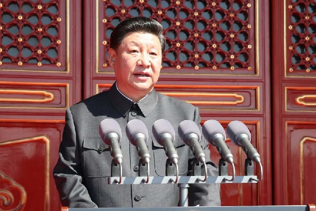 9月3日,纪念中国人民抗日战争暨世界反法西斯战争胜利70周年大会在北京天安门广场隆重举行。这是中共中央总书记、国家主席、中央军委主席习近平在大会上发表重要讲话。新华社记者兰红光摄